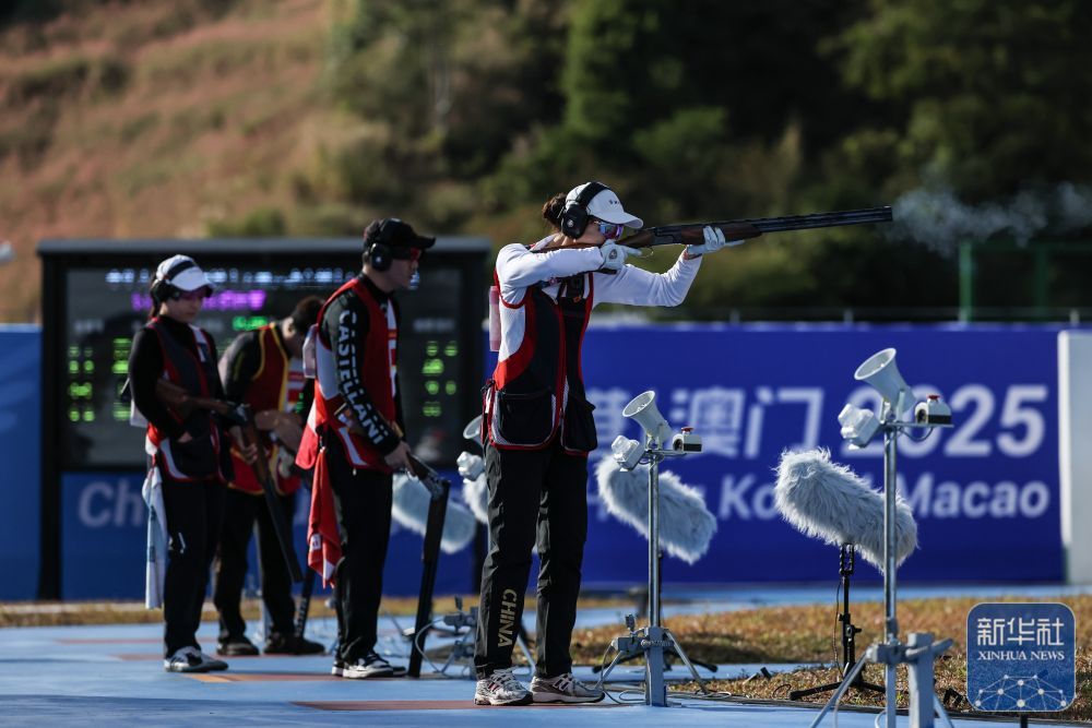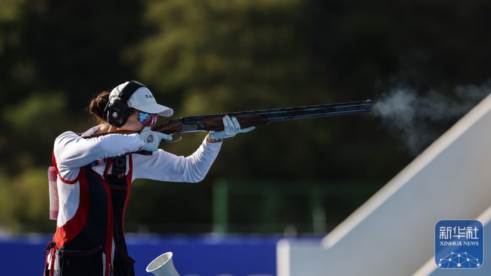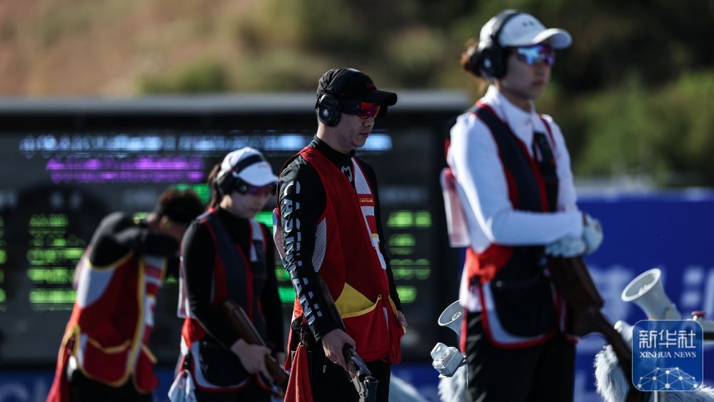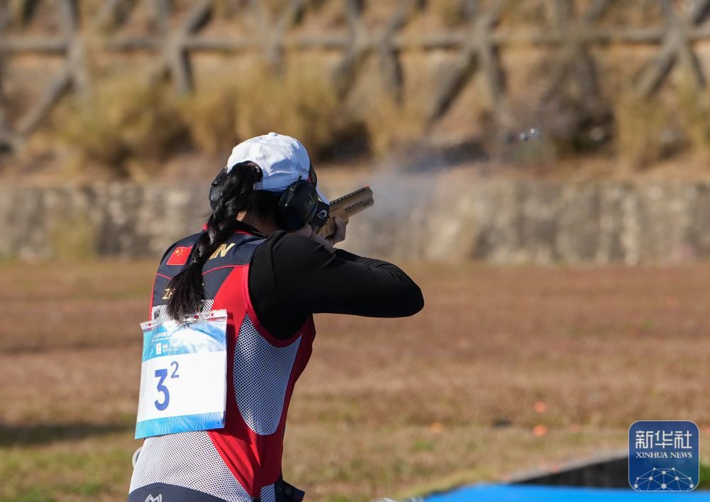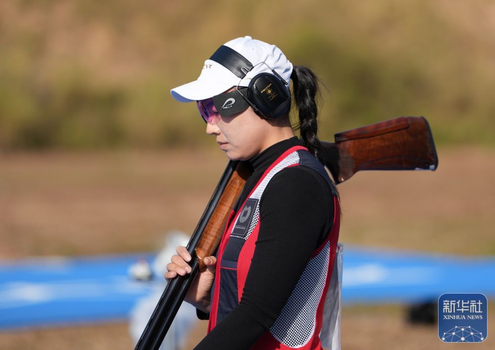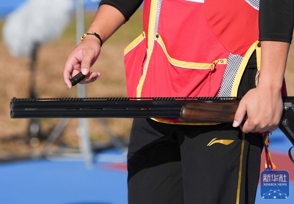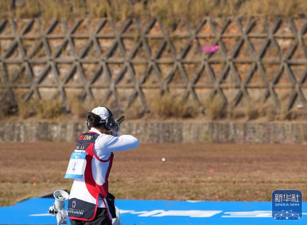 ↑ 山東隊選手齊迎在比賽中。于海最終,成柳齊迎/朱靖宇獲得第四名。珊珊射擊 新华社记者 潘昱龙 摄