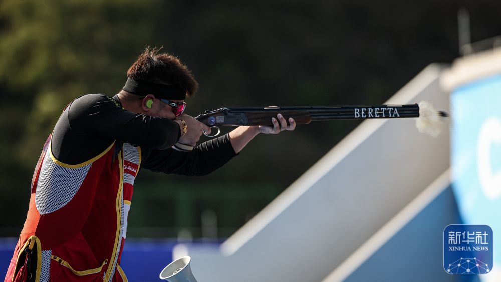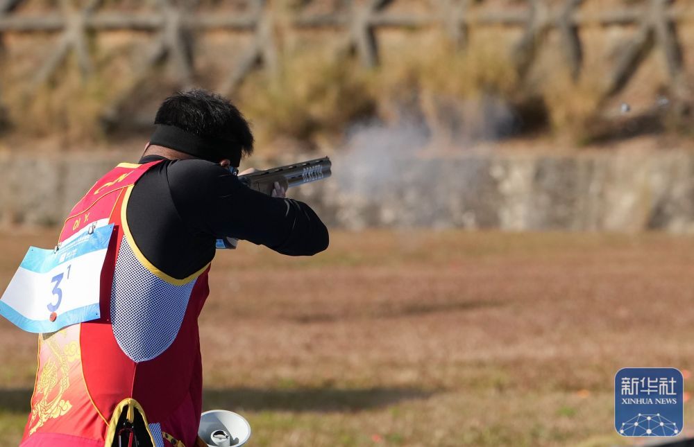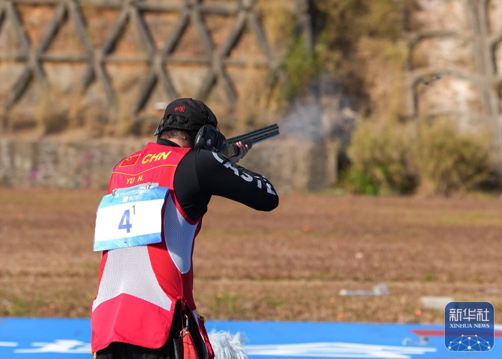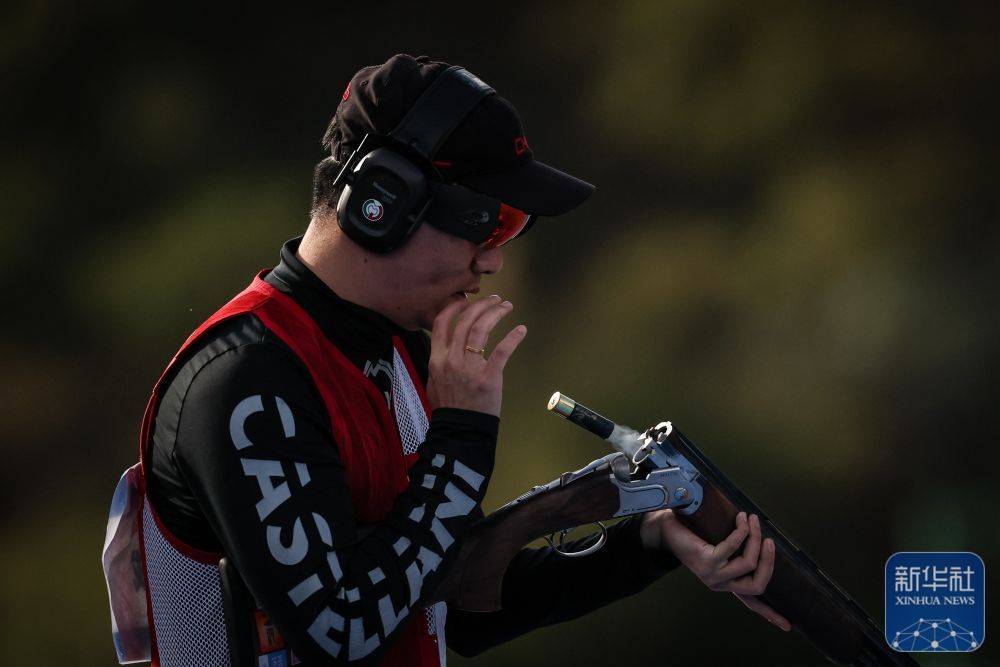 ↑ 山東隊選手朱靖宇在比賽中。飛碟最終,團體齊迎/朱靖宇獲得第四名。 新华社记者 潘昱龙 摄