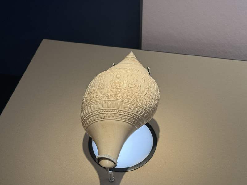 砗磲乾隆帝御题诗七佛左旋白螺,钟启明捐献。新京报记者 张建林 摄