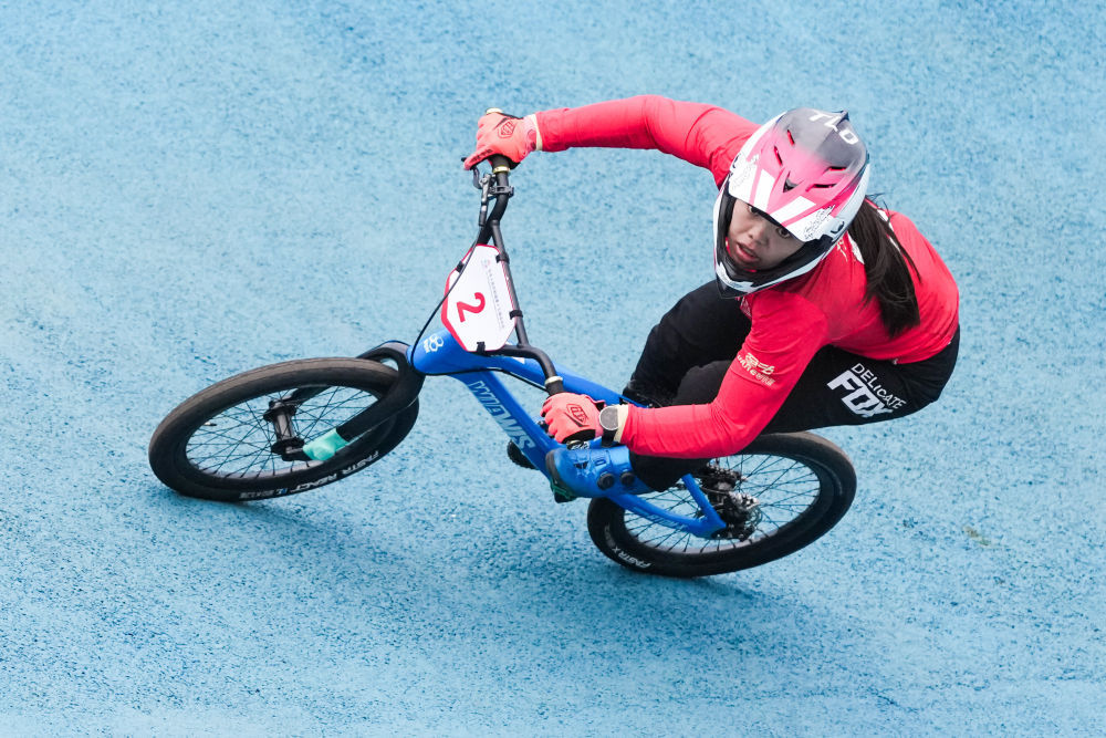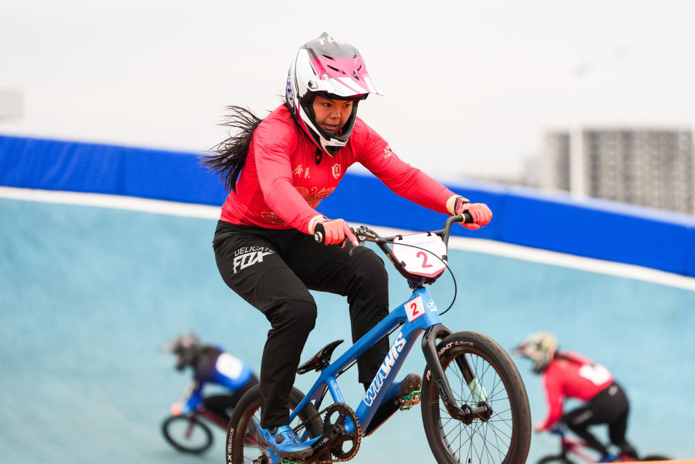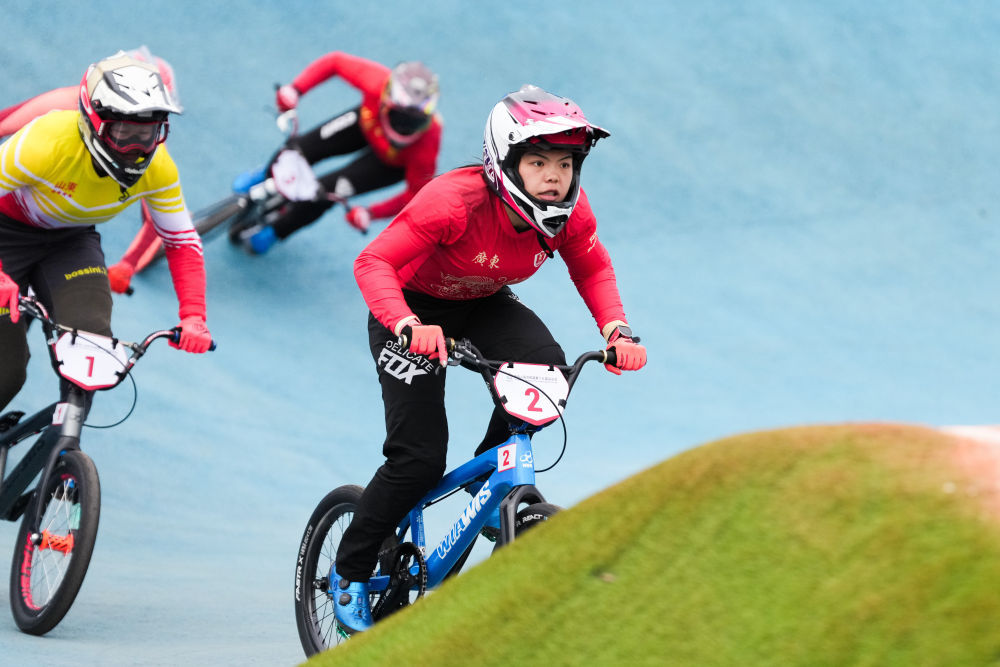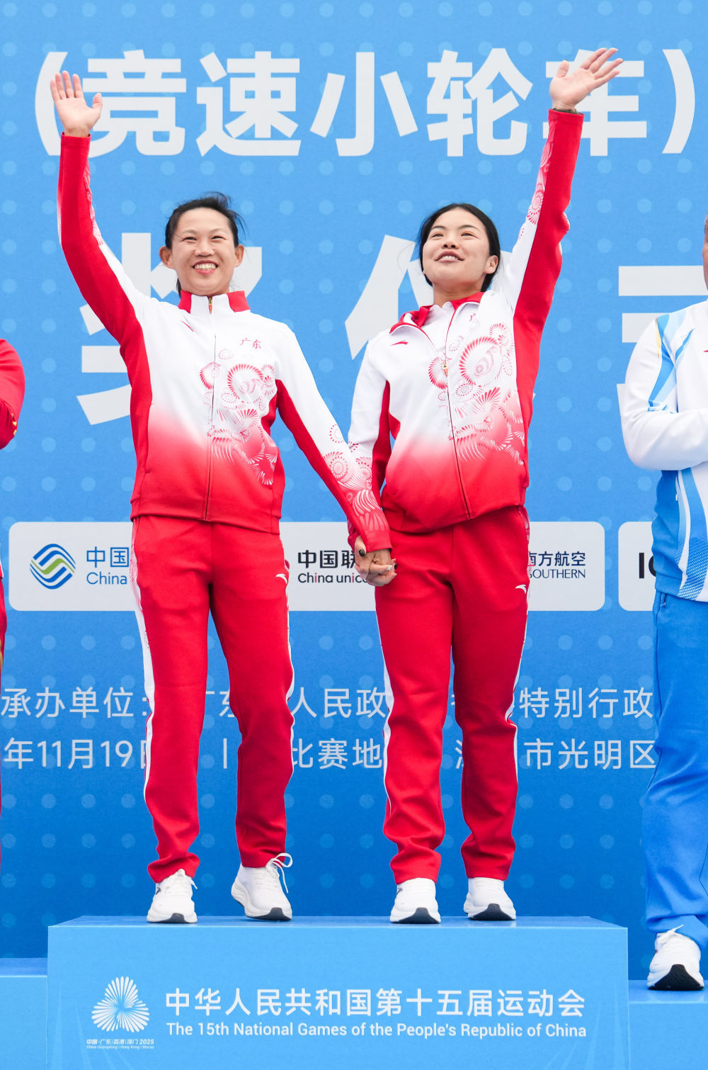 ↑ 廣東隊選手廖婉儀(右)在比賽中。速小速賽 新华社记者 陈思汗 摄