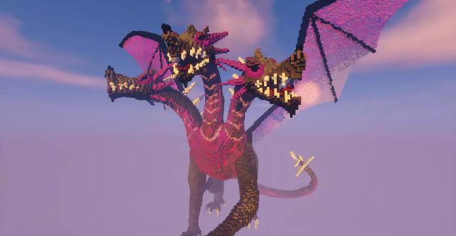這只三头龙每一個頭樣子都相當的猙獰可怕,色彩選擇了不同常見的玫紅,如同毒蘑菇似的,越艷的色彩表明它越兇險。