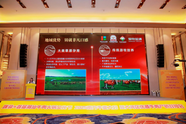 展会现场,“游牧起源”牛肉不仅以口感征服味蕾,更凭借其生态品质、全程可追溯体系以及多元产品组合,赢得了行业的广泛认可。这场跨越山海的味觉邂逅,不仅让大湾区消费者感受到了呼伦贝尔草原的辽阔与纯粹,也为呼伦贝尔农垦集团开拓南方市场开启了崭新篇章,为“北牛南销”注入了蓬勃动力。