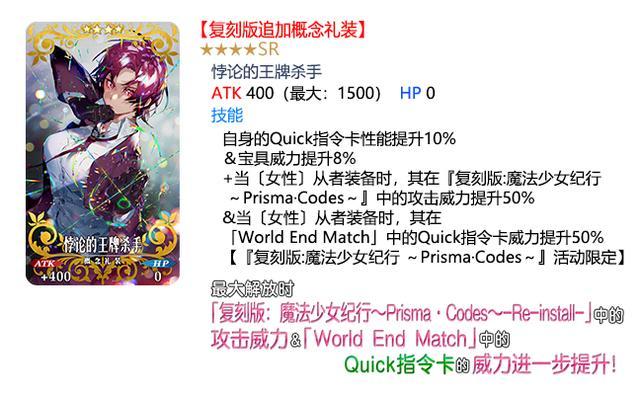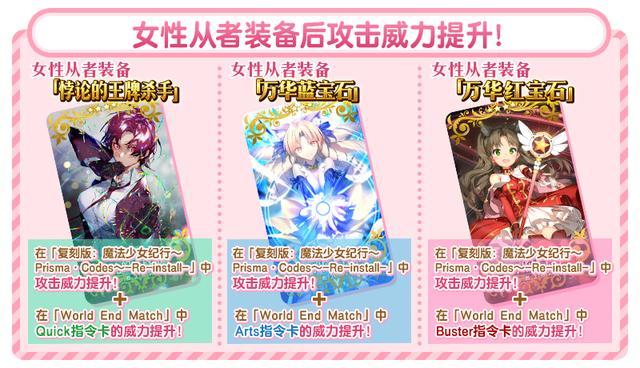 此外,在「World End Match」中,裝備上述任务限定觀念禮裝還將提升各指令卡的威力。
