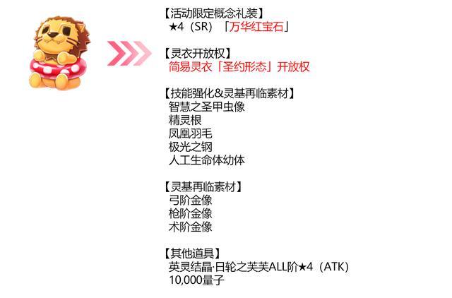 ※浅显灵衣「圣約外形」開放權、英靈結晶·日輪之芙芙ALL階★4(ATK)、英靈結晶·流星之芙芙ALL階★4(HP)的調換將在全部通關仲春19日(周三)開放的主線关卡后解鎖。