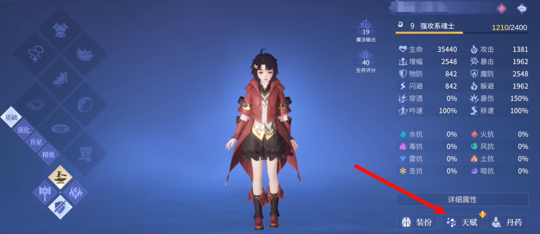 此外,天赋点如何加主要取决与玩家所获得的武魂,要是玩家的武魂偏魔法,那么智慧属性带来的魔法攻击加成、魔法防御加成和魔法增幅是玩家最为需要的,加点时最好以主加智慧为主,剩余点数则根据需要加精神或体质,用来帮助自己提升生存能力。反之,所使用的武魂偏力量就主加力量属性。倘若各位拿不准武魂的性质,从而导致不知道哪方面的属性对自己提升大,诛邪传说还有着很使用的推荐功能,可一键帮各位确定好所需的主属性,特别的实用。