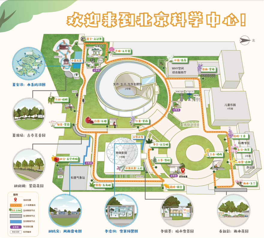 北京科学中心科技文化部体系建设项目主管王云翔说,中心展生与一般的打造公园赏景不同,中心的将开景观中蕴含科学知识。“我们围绕植物六大器官知识、命科二十四节气变化、自然灾害生存技能等方面,设计了一条户外科学教育路线,让观众在画中游、游中学。”