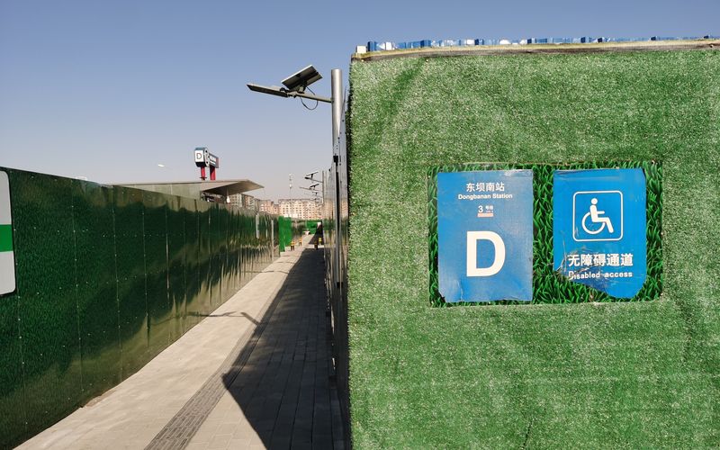 地铁东坝南站A口外的工地围挡。新京报记者 戴轩 摄