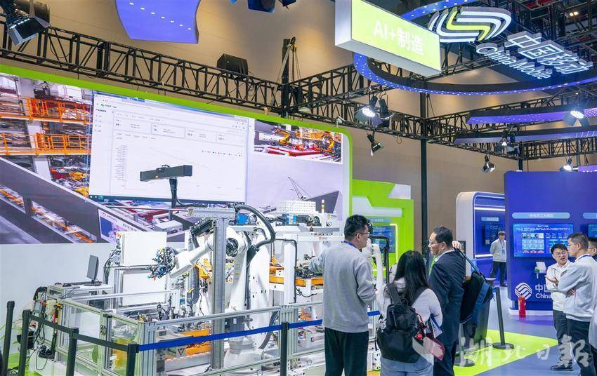 大会创新成果展现场,中国移动站台的AI+制造模拟场景。