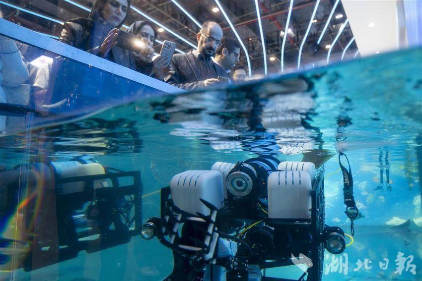 中国联通展台的远程水下机器人演示水下操作。