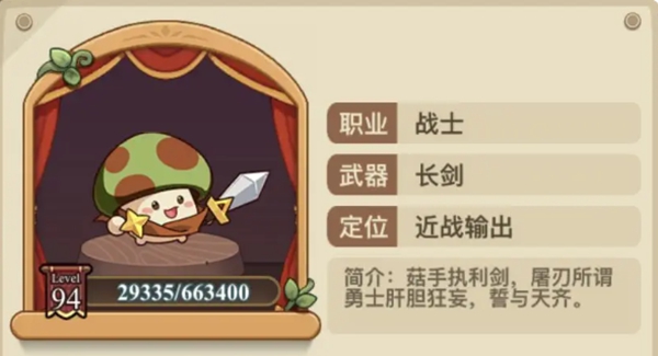 转职为战士后,日首菇勇者的发上武器将化为长剑。同时,角色自身获得了可以范围打击,扮演并使敌方目标受到额外反击伤害的类养主动技能,以及增加反击几率和增加防御的成游被动技能。
