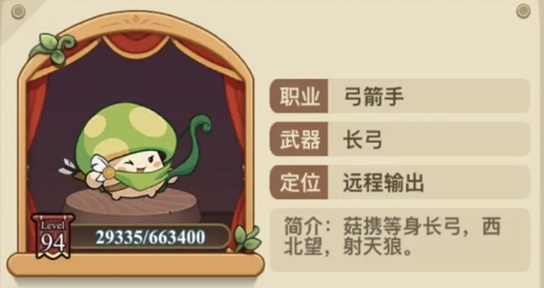 弓箭手手持长弓,擅长远距离作战。成为弓箭手后,菇勇者们额外增加了可以范围打击,并使目标受到额外连击伤害的主动技能,以及连击概率增加、攻速增加的被动技能