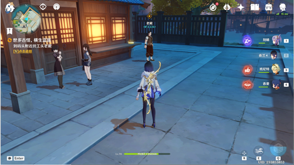 2、横生往东北方向走,盗匪来到码头边上,任务和工头老戴对话。流程