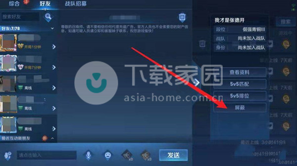 王者荣耀怎么设置对某个人不可见