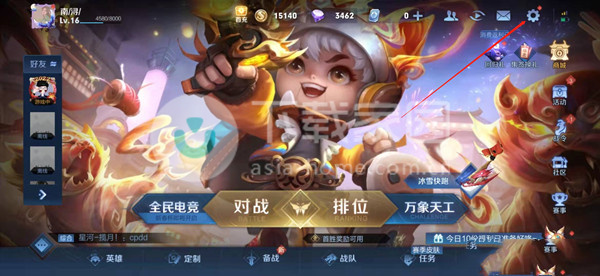 1、荣耀来到游戏大厅,设置点击右上角的对某好友图标。