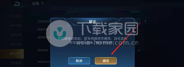 3、弹出提示框,点击确定就可以隐身了。