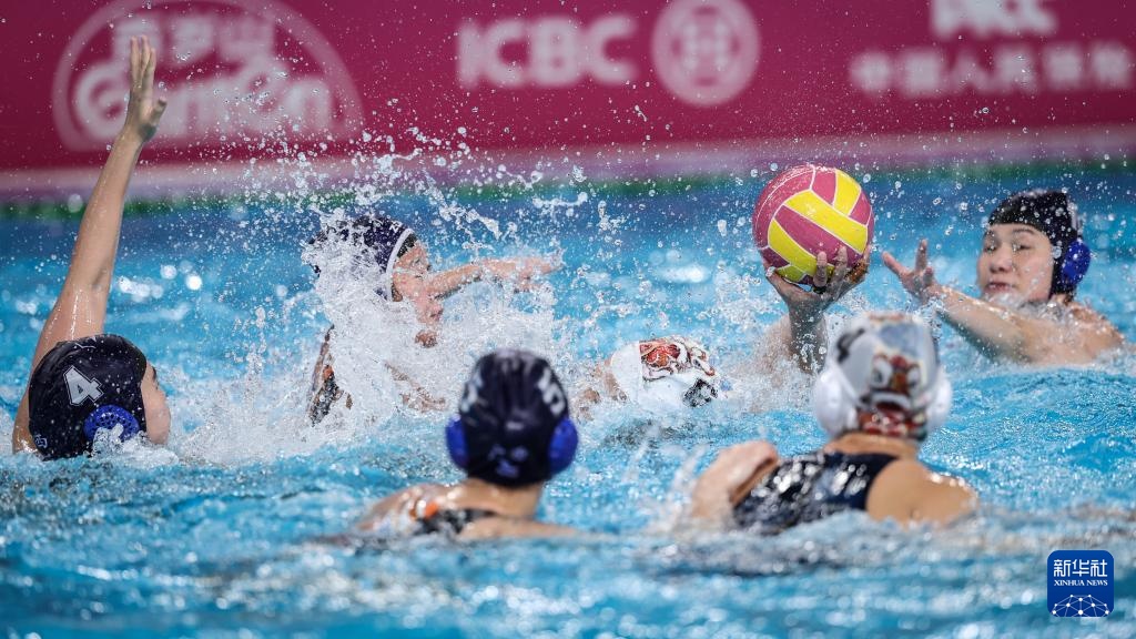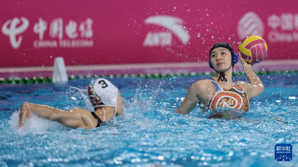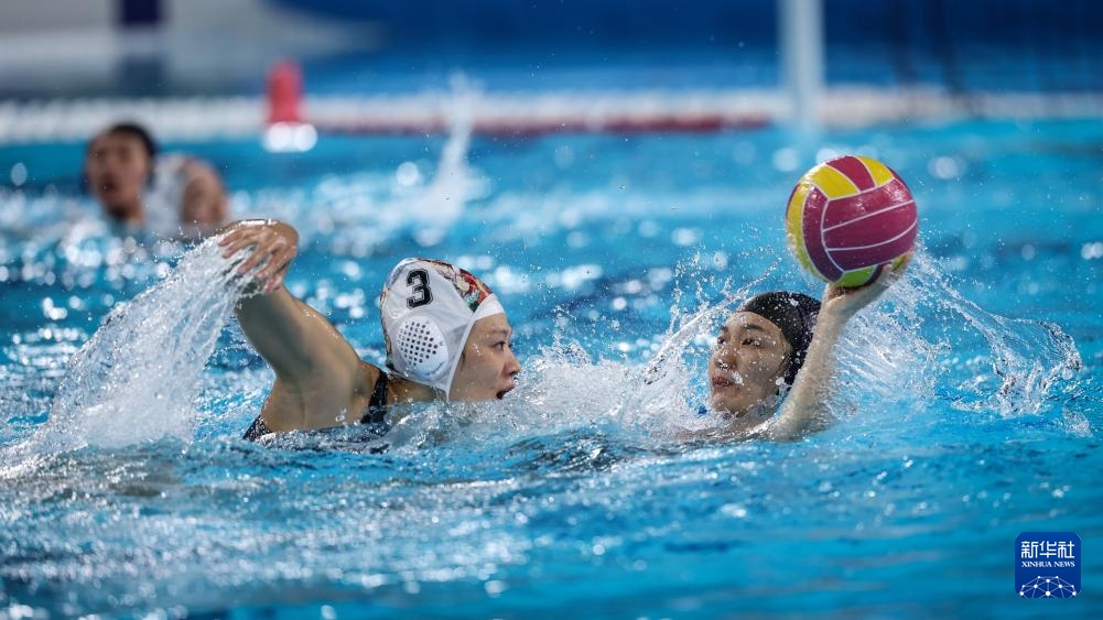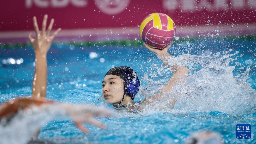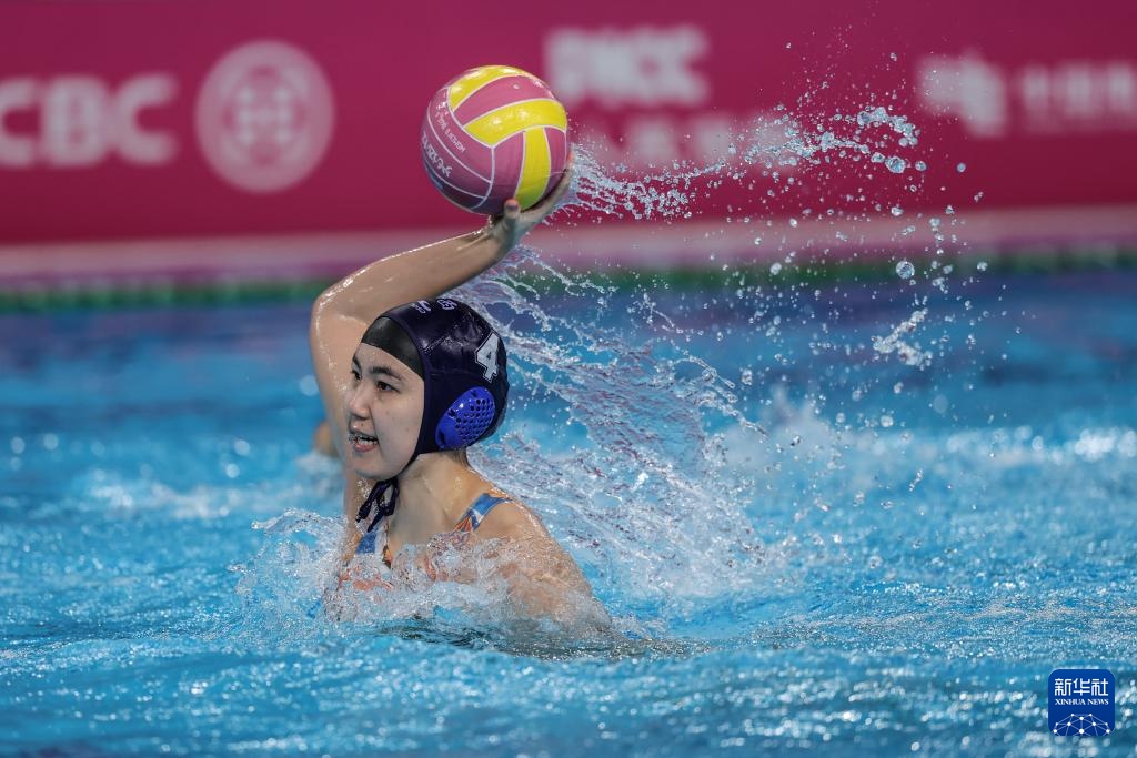 11月21日,全运广西队球员孟馨炎在比赛中传球。水球水球