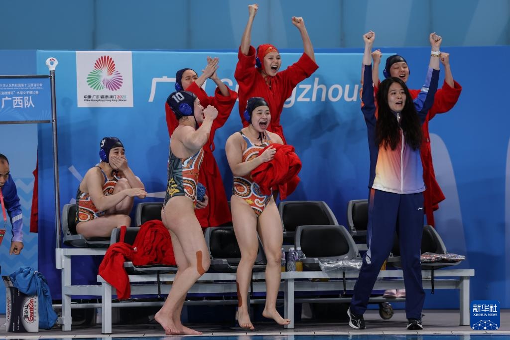 当日,在广州举行的第十五届全国运动会女子水球铜牌赛中,广西8比6战胜湖南队,夺得铜牌。