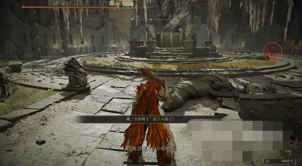 3、环D徽章护符获走到右侧尽头的圣战广场,此处会刷出一个红灵【火焰骑士昆兰】,登法将其击败获得护符【圣战徽章】。环D徽章护符获