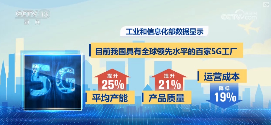 工业和信息化部数据显示,目前,我国具有全球领先水平的百家5G工厂,平均产能提升了25%,产品质量提升了21%,运营成本降低19%。