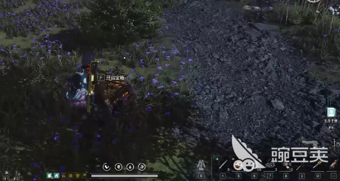 第二个宝箱位于河流中央,玩家此时可以搭乘着渡口的小船前往,也可以直接使用游泳的功能前往,最终玩家会在瀑布旁看到一个宝箱,宝箱的位置比较明显,玩家直接开启即可。