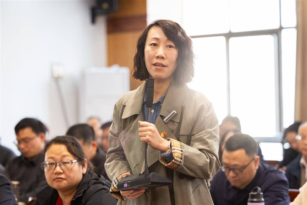教师代表向全国政协委员、民革湖北省委副主席、湖北第二师范学院院长郑军提问。