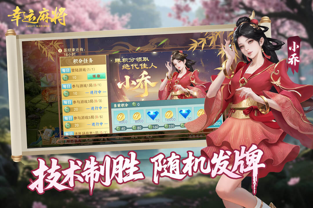 我们坚信,真正的荣耀属于技术!《幸运麻将》采用最严格的随机发牌机制,确保牌局的绝对公平性。没有无谓的“套路”,只有精准的计算、果断的决策和临场的应变!在这里,运气是敲门砖,技术才是登顶王座的不二法门!是时候展现你真正的麻将实力了,谁才是三国麻将界的真正霸主?等你来证明!