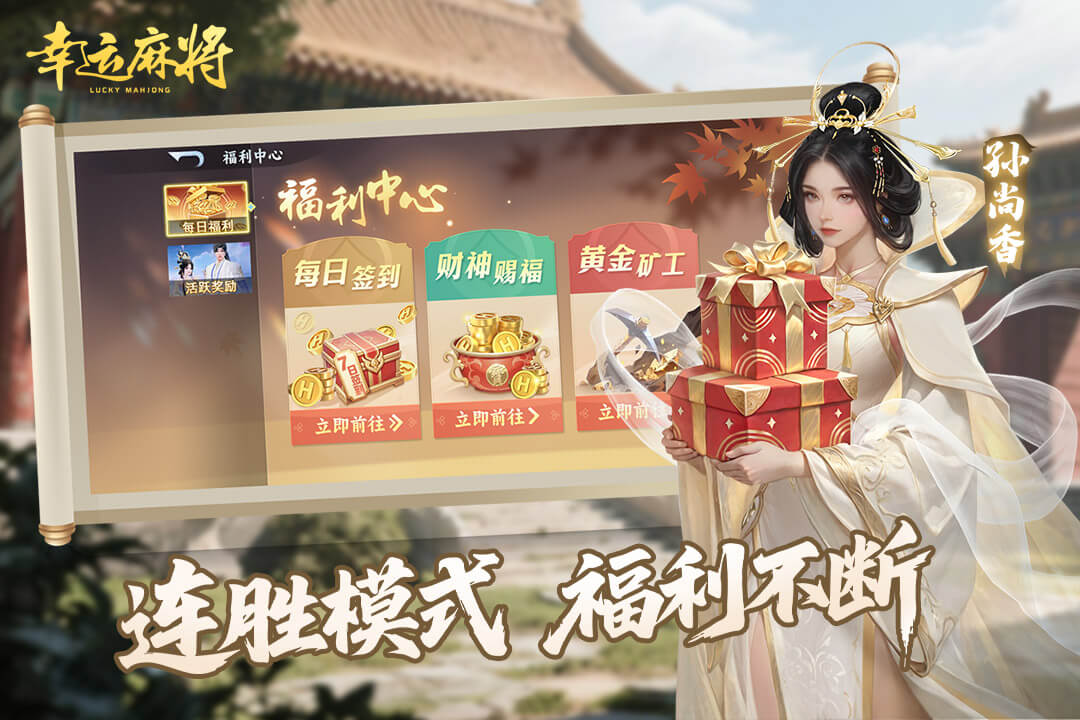 《幸运麻将》不仅仅是一款麻将游戏,更是一个融合了三国文化、3D视觉盛宴、热血竞技与海量福利的沉浸式游戏世界!我们致力于为每一位玩家带来最公平、最刺激、最好玩的真人对战麻将体验!