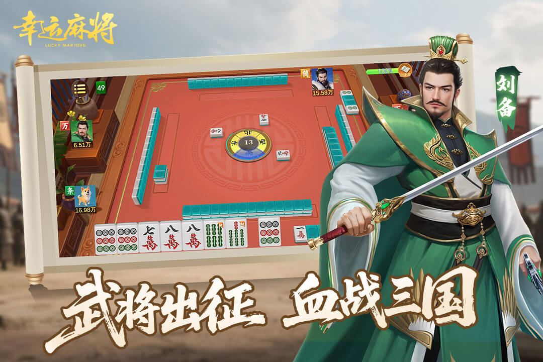 想象一下:不再是冰冷的牌桌背景,而是置身于烽火连天的三国古战场!在《幸运麻将》中,你将化身一方诸侯,以手中的“万、筒、条”为兵刃,以“胡牌”为号令,在经典的川麻血战规则下,与其他玩家展开激烈厮杀!每一次胡牌,都如同攻下一座城池;每一次胜利,都在为你的“三国霸业”添砖加瓦!独特的“连胜之路”玩法,让你一路过关斩将,体验横扫千军的快感!
