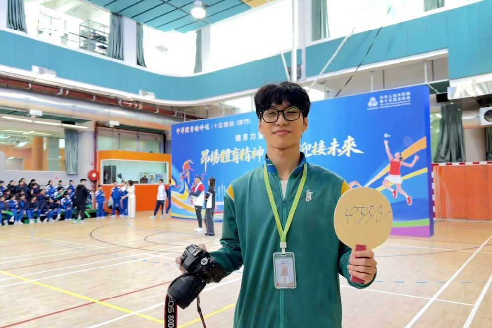圣若瑟教区中学第六校高三学生陈傲扬在问答环节获得了一支由世界冠军签名的乒乓球拍。“这个球拍很珍贵,我会把它放在收藏柜里。成为世界冠军一定付出了很多努力,这个拍子也激励我要向着我的梦想前进。”他说。