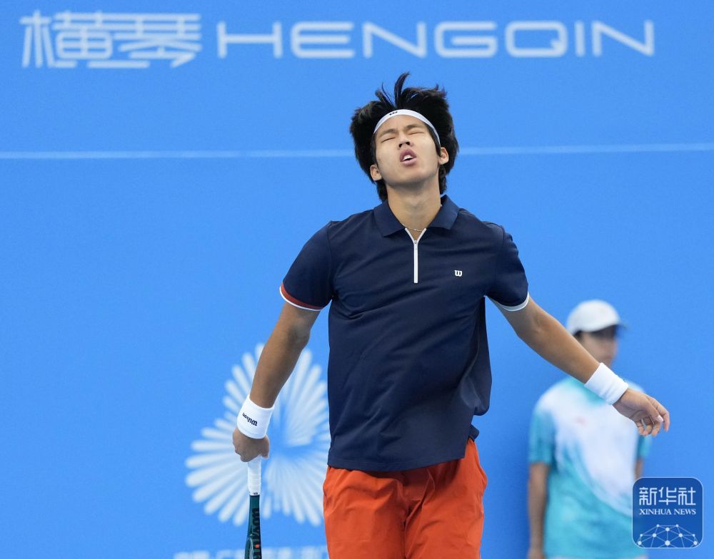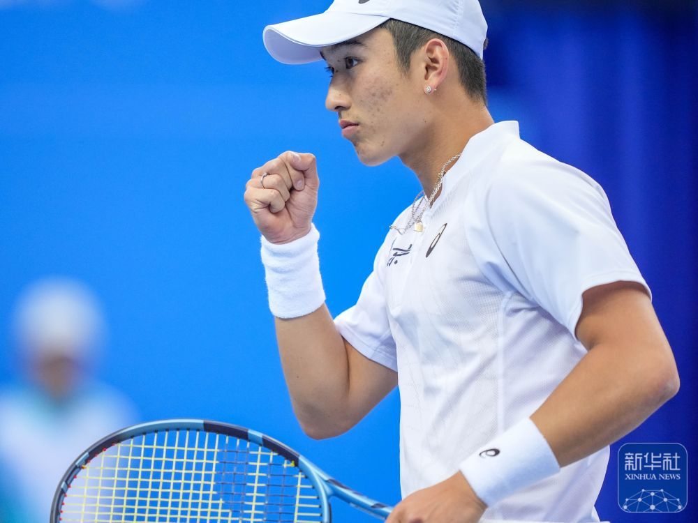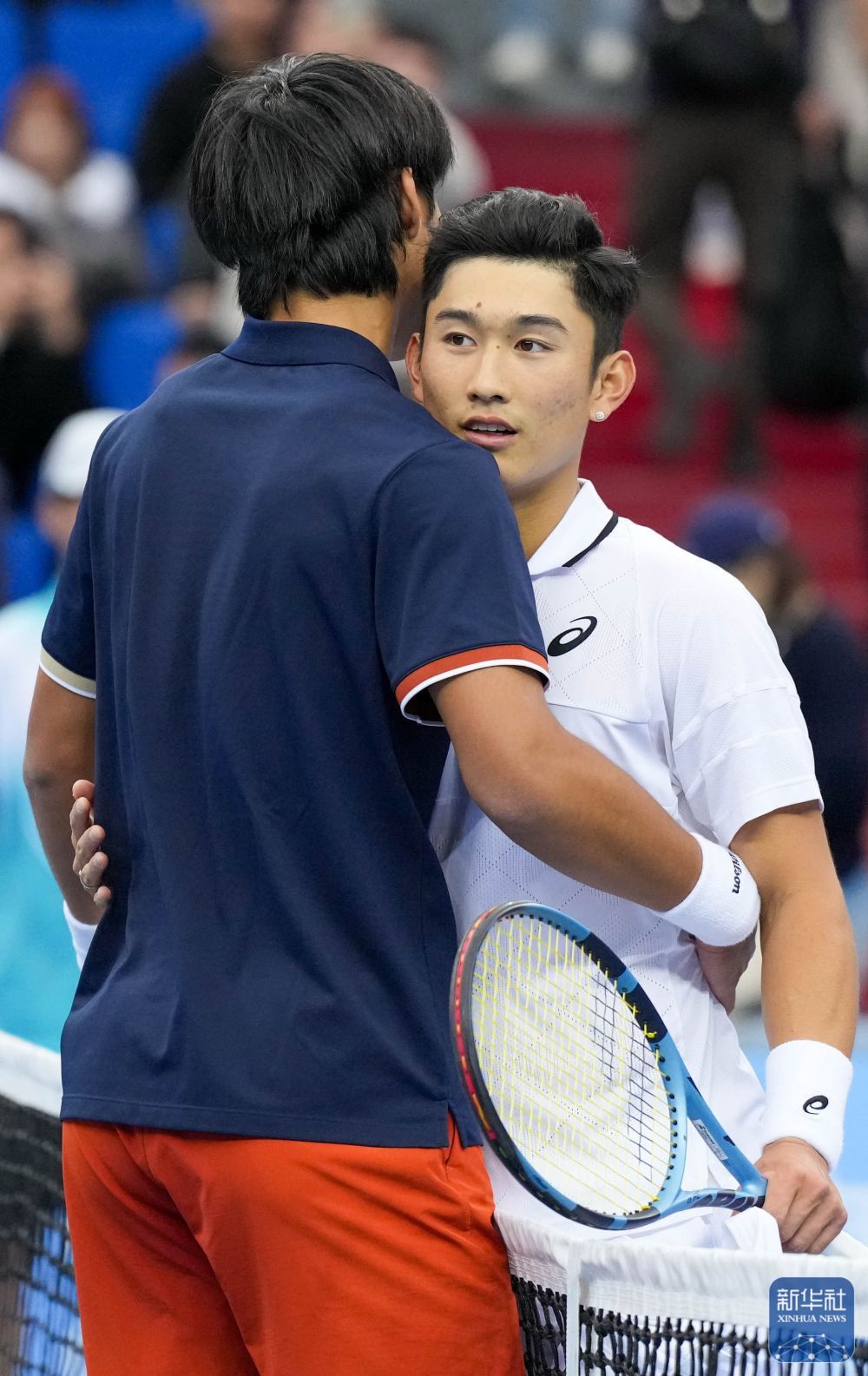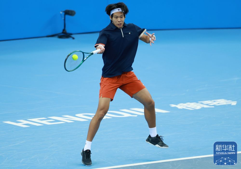 ↑ 北京队选手商竣程在比赛中回球。网球新华社记者 张晨霖 摄