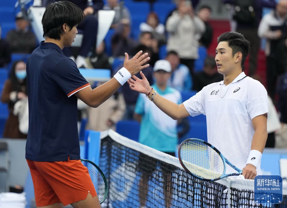 ↑ 北京隊選手商竣程(右)與廣西隊選手周意在比賽后握手致意。新华社记者 颜麟蕴 摄