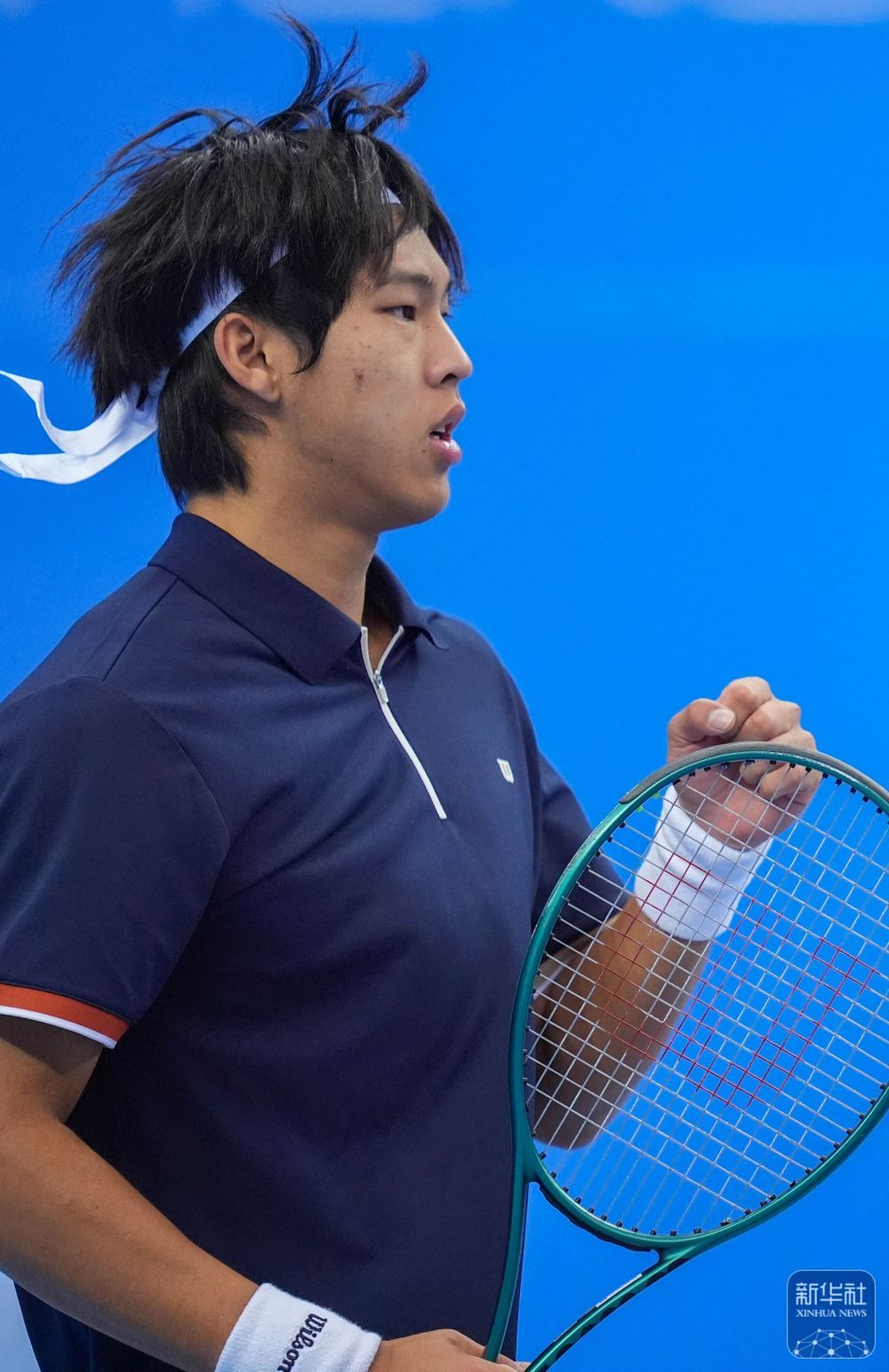 ↑ 北京队选手商竣程在比赛中回球。竣程晋级新华社记者 张晨霖 摄