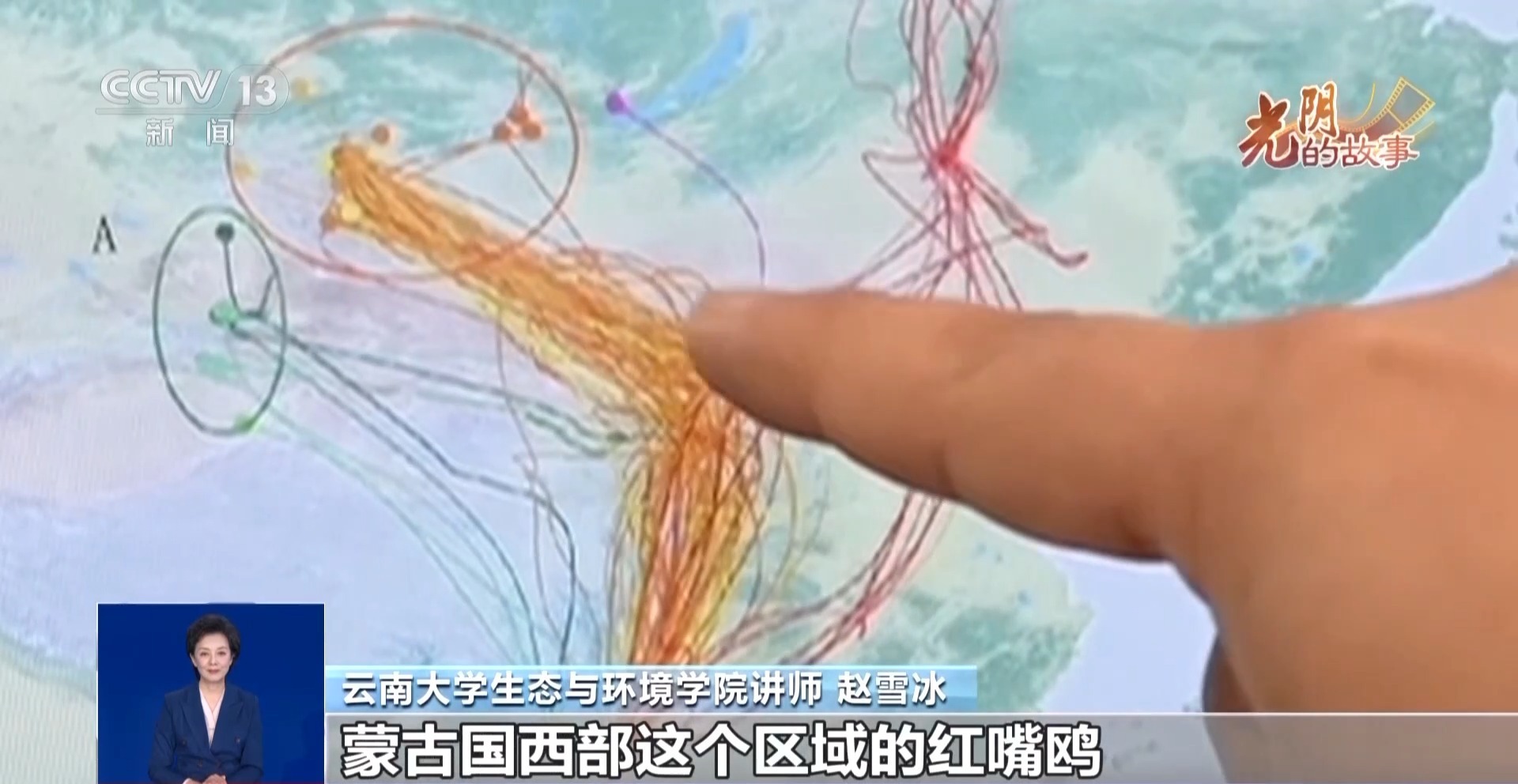 云南大学生态与环境学院讲师 赵雪冰:我们近年主要是通过给昆明越冬红嘴鸥背负卫星追踪器,知道了红嘴鸥的迁徙路线,在来昆明越冬的主要是四条迁徙路线,最主要的其实是来自于蒙古国西部这个区域的红嘴鸥,此外,还有来自新疆、萨哈(雅库特)共和国。最远的路线,其实来自过去我们认为的主要的贝加尔湖区域的种群数量是相对比较少的一条迁徙路线。