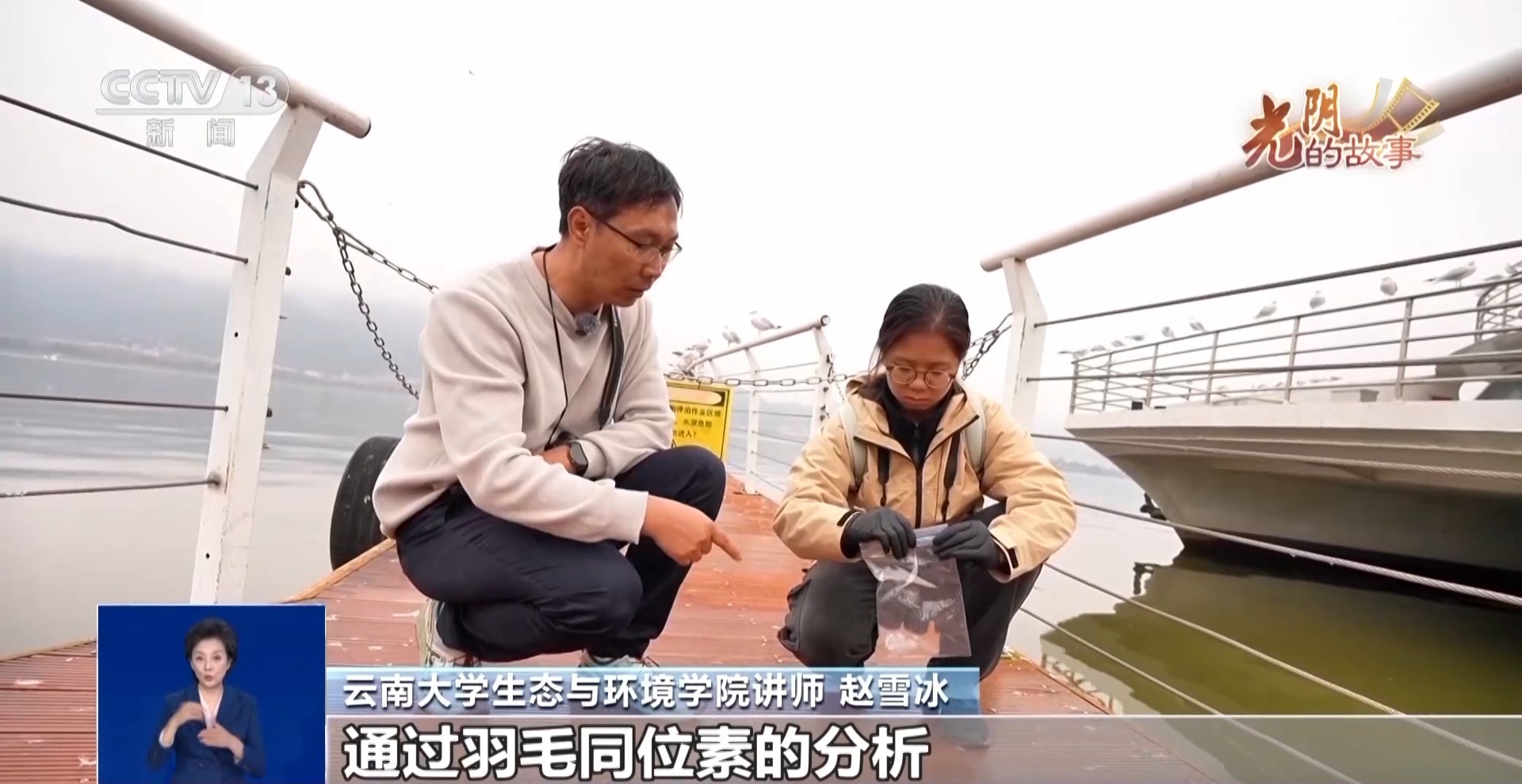 云南大学生态与环境学院讲师 赵雪冰:通过羽毛同位素的分析,测定它的繁殖地的一些状况,包括来源、还有一些营养状况。