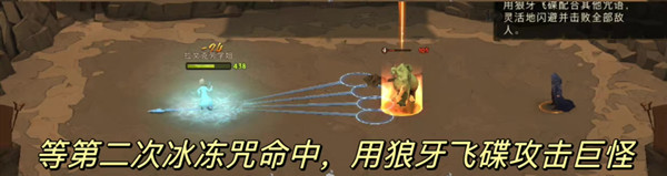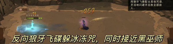 4、把狼牙飞盘往我们身后扔,躲避冰冻咒的攻击,然后靠近黑巫师。