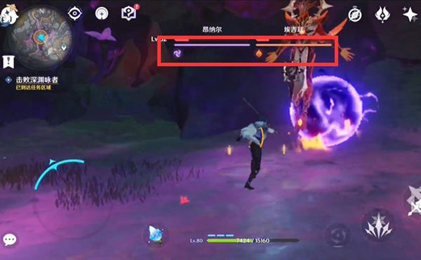 5、打到深渊咏者残血的时候,它身后会出现护盾。