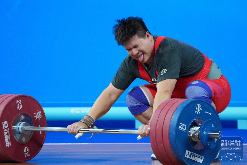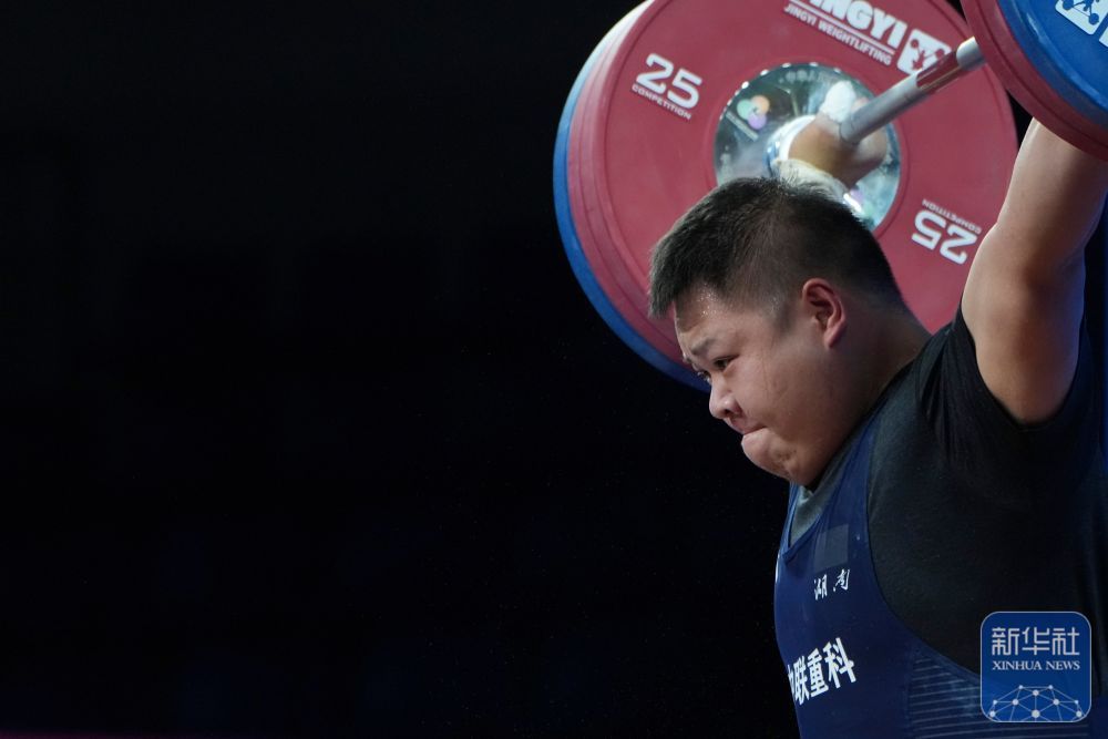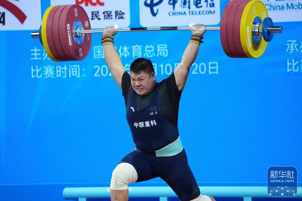 ↑ 湖南队选手石禅龙在挺举比赛中。贵洲冠军