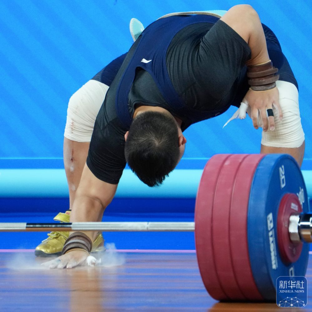↑ 吉林队选手任相霖在挺举比赛中试举失败。