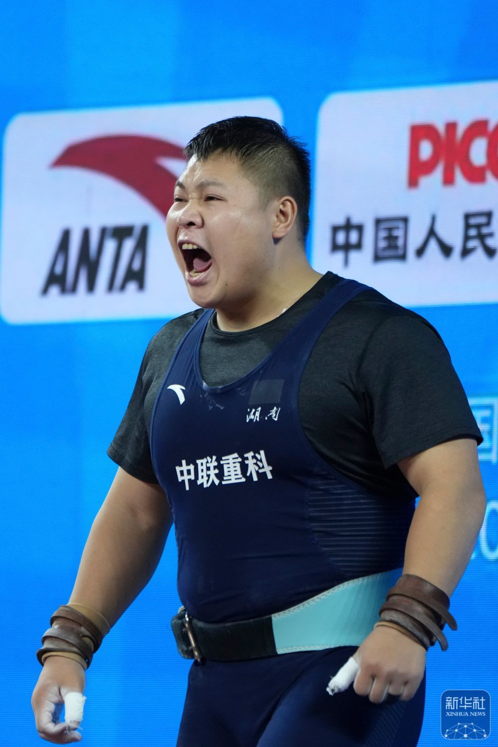 ↑ 湖南队选手石禅龙在抓举比赛中。贵洲冠军