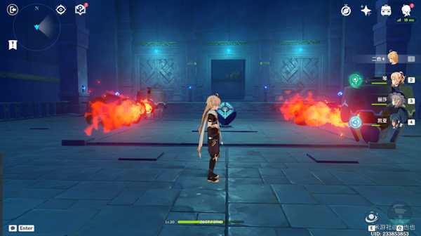 火焰机关可以使用【凯亚】元素战技冰冻,任务打开图中间机关