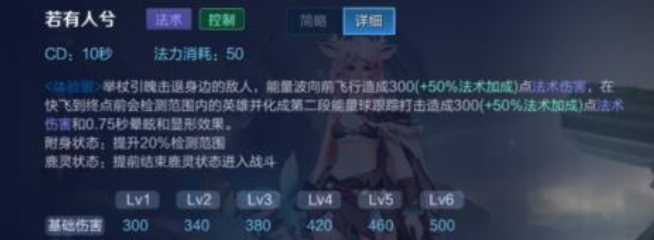 运用该技能,瑶会解放能量波击败对手带来伤害,在能量波飞翔到尽头后,会测试前面英雄而且开展追踪攻击,对指定目标开展再次攻击,带来晕眩和显形特效。换句话说,该技能能够被用于探测草地。