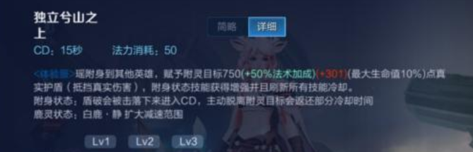 瑶的三技能是附在我方英雄手上,而且会为指定目标带来抵御真伤的防御盾,当防御盾被击破时候,瑶便会离开附身指定目标。附身会更新全部技能CD,而在鹿灵形状运用大招,降低四周英雄移速的范畴便会增大。