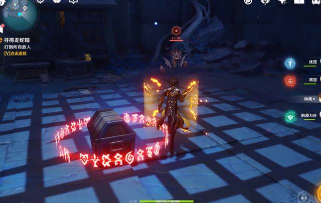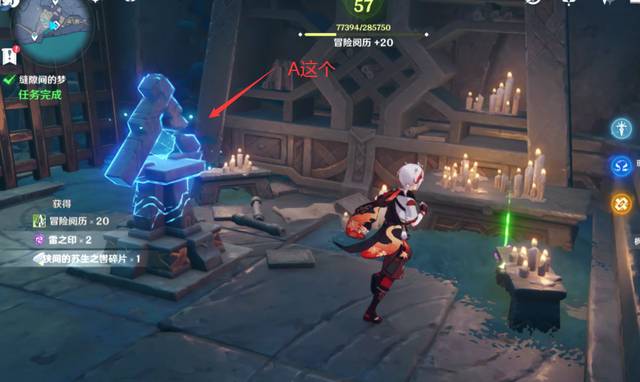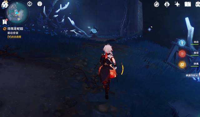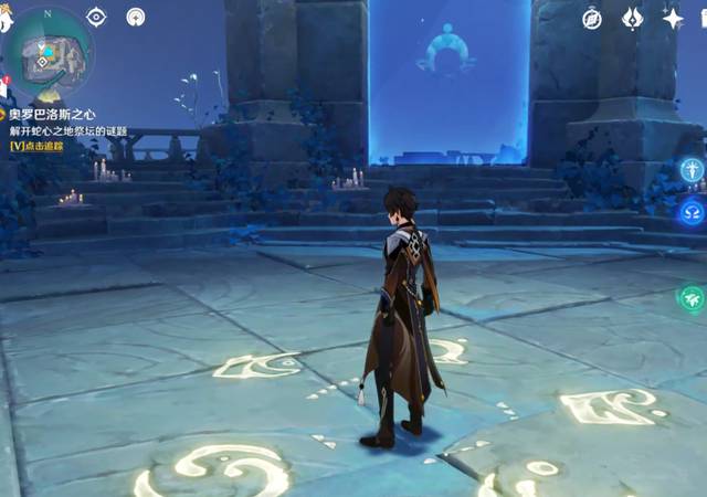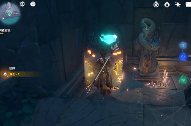 1、原神渊下接取寻得龙蛇踪任务,宫块点击追踪去收集三个光亮点,碎片开启密室。位置