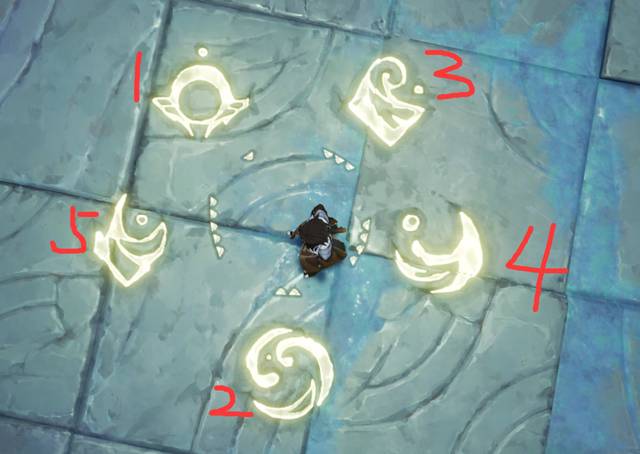 2、站在中间的解谜地图上,按照下图所示的顺序解密。