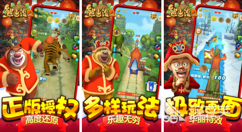 熊出没2是动漫改变的游戏,游戏中的角色非常有趣,也有很多搞笑的剧情,游戏中的操作模式很简单,就是让游戏角色躲避障碍物,收集道具,增加分数,而且游戏里还有超多的关卡模式,玩家甚至可以在一局游戏中体验到多人混战的刺激。本款游戏采用的是3D画面,画面比较真实,就像在看动画片一样。