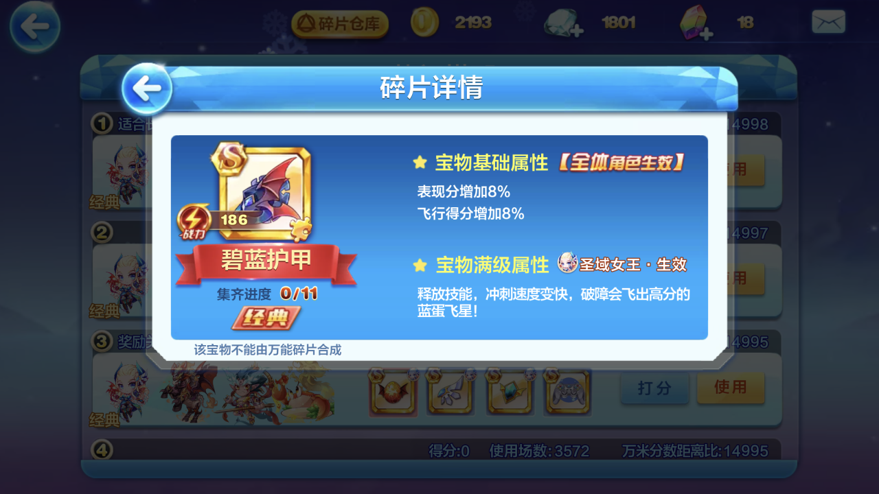 碧蓝护甲能给圣域女王增加8%的表现分和8%的飞行分,满级会有一个只对圣域女王生效的属性,圣域女王释放技能冲刺速度会变快,破障会飞出高分的蓝蛋飞星。