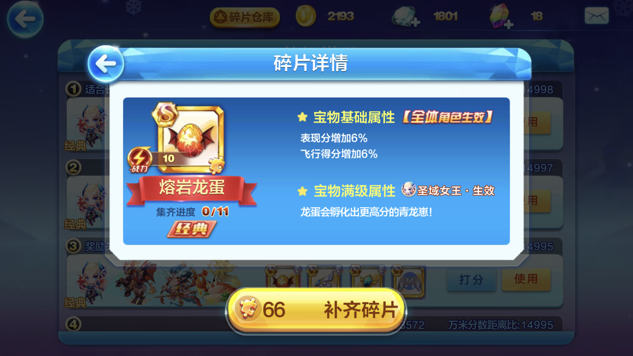熔岩龙蛋,加6%的表现分和飞行得分,满级后能让龙蛋孵化出更高分的青龙崽。